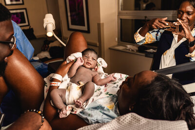 Typically stay 2 hours postpartum to capture first latch, weight, footprint, first snuggle